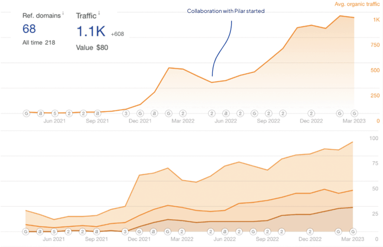 Organic traffic increased from approximately 300 to over 1,000 monthly visitors